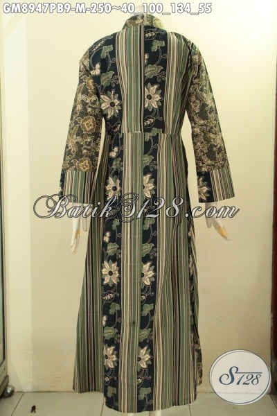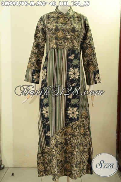 Produk Busana Batik Wanita Berhijab Tampil Syar’i, Gamis Batik Nan Istimewa Desain Kerah Shanghai Dengan Kantong Dalam Dan Resleting Belakang Bahan Halus Nayaman Di Pakai [GM8947PB-M]
