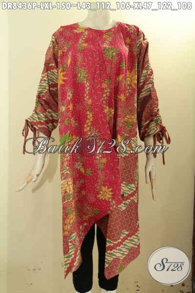 Produk Busana Batik Wanita Kekinian, Pakaian Batik Dress Halus Motif Kombinasi Proses Printing, Baju Batik Nan Istimewa Dengan Model Lipat Depan Pakai Kancing Belakang Serta Lengan Bertali Hanya 150K [DR8436P-L , XL]