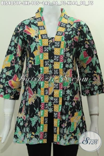 Produk Busana Batik Wanita Masa Kini Model Kerah Kartini Tampil Anggun Dan Modis, Baju Batik Printing Berbahan Halus Motif Keren Abis [BLS4051P-L , XL]