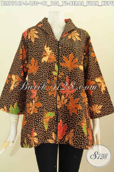 Produk Busana Batik Wanita Terkini, Blus Resti Motif Beras Utah Kupu Daun Pepaya, Baju Batik Modis Kerah Langsung Dengan Resleting Depan 150 Ribu Saja [BLS7516P-L]