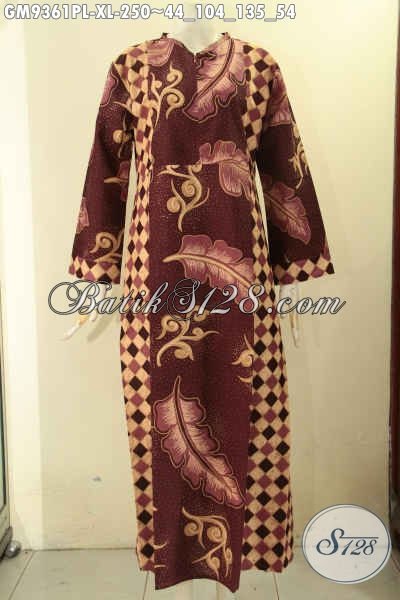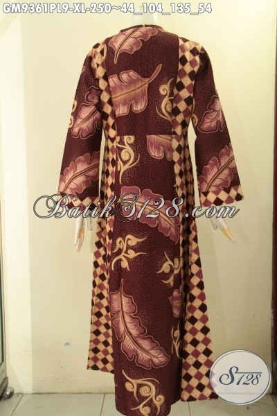 Produk Gamis Batik Terbaru Kwalitas Istimewa, Busana Batik Wanita Berhijab Nan Berkelas Model Resleting Depan Kombinasi 2 Motif, Cocok Untuk Acara Santai Maupun Resmi [GM9361PL-XL]