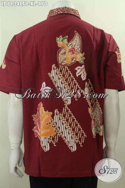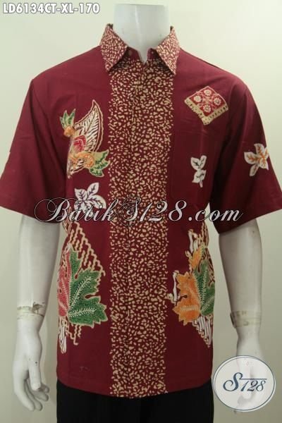 Produk Hem Batik Warna Merah Bahan Halus Dan Adem, Kemeja Batik Lengan Pendek Tanpa Furing Motif Terbaru Proses Cap Tulis Untuk Lelaki Terlihat Macho Dan Tampan [LD6134CT-XL]