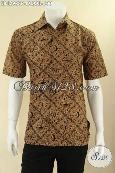 Kemeja Batik Solo Elegan Lengan Pendek Halus Motif Klasik, Pakaian Batik Pria Masa Kini Modis Untuk Kerja Dan Elegan Buat Kondangan [LD12938P-XL]