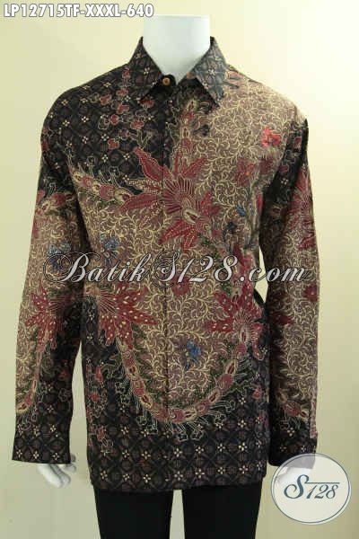 Produk Kemeja Batik Exclusive Model Lengan Panjang Big Size, Pakaian Batik Tulis Asli Motif Elegan Pakai Furing, Pas Untuk Pria Gemuk [LP12715TF-XXXL]