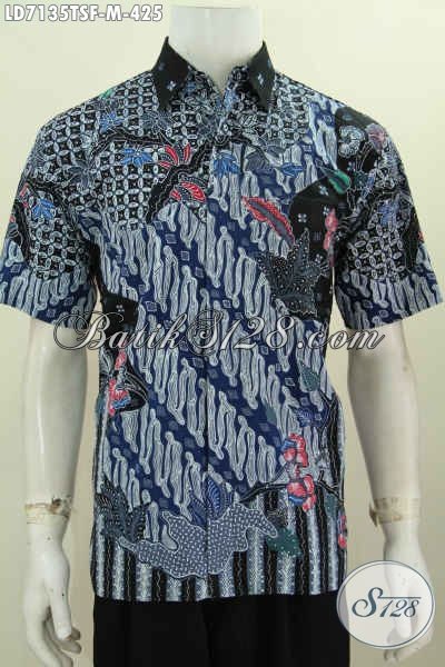 Produk Kemeja Batik Lengan Pendek Mewah, Pakaian Batik Mewah Halus Buatan Solo Motif Terkini Daleman Full Furing Hanya 425K [LD7135TSF-M]
