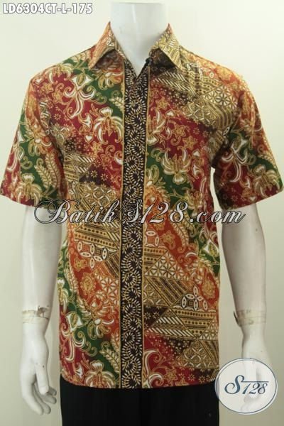 Produk Kemeja Batik Pria Dewasa Desain Mewah Size L, Hem Batik Modis Motif Terbaru Yang Keren untuk Seragam Kerja, Bahan Adem Proses Cap Tulis Harga 170 Ribuan [LD6304CT-L]