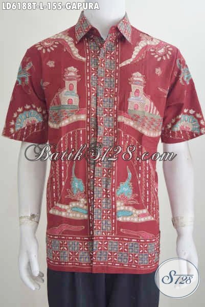 Produk Kemeja Batik Pria Terkini, Hem Batik Merah Motif Gapura Model Lengan Pendek Proses Tulis Bikin Penampilan Lebih Gaya Dan Kece [LD6188T-L]