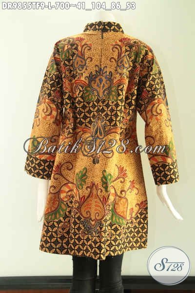 Produk Koleksi Terkini Untuk Wanita Tampil Mewah Dan Berkelas, Dress Batik Solo Motif Elegan Proses Tulis Asli Desain Modern Daleman Full Furing, Bisa Untuk Ngantor Dan Acara Formal [Dr9855TF-L]