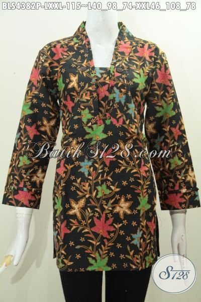 Produk Pakaian Batik Cewek Terkini Dengan Model Resleting Belakang Keren Berpadu Motif Bunga Nan Mewah, Baju Batik Wanita Dewasa Proses Printing Tampil Berkelas Dan Cantik Maksimal [BLS4382P-L , XXL]