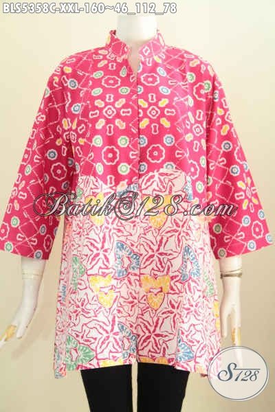 Produk Pakaian Batik Kwalitas Istimewa, Busana Batik Modern Kerah Shanghai Berbahan Halus Proses Cap Dengan Dual Motif Keren Yang Membuat Penampilan Lebih Gaya [BLS5358C-XXL]