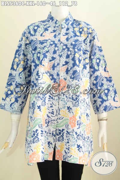 Produk Pakaian Batik Spesial Untuk Wanita Gemuk, Baju Blus Kerah Shanghai Berbahan Halus Motif Trendy Proses Cap Yang Bikin Penampilan Makin Keren Dan Cantik Maksimal [BLS5360C-XXL]