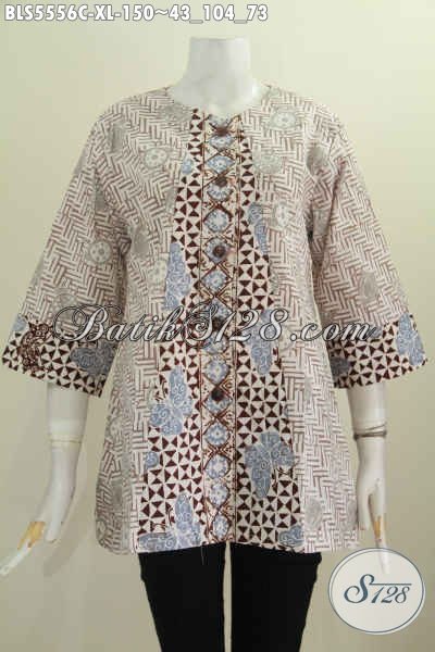 Produk Pakaian Batik Wanita Dewasa Terkini, Blus Batik Solo Modern Desain Tanpa Kerah Bahan Halus Proses Cap Dengan Dua Warna Hanya 150 Ribu Saja [BLS5556C-XL]
