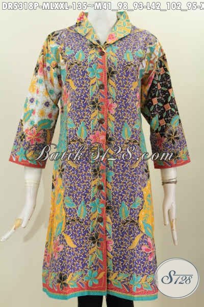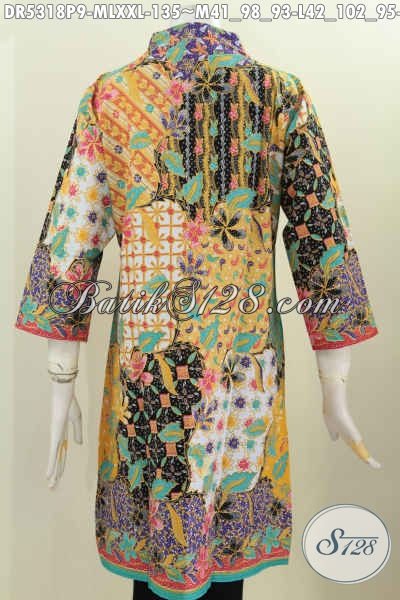 Produk Pakaian Batik Wanita Karir 2016, Busana Batik Halus Model Kerah Langsung Motif Berkelas Proses Printing Untuk Penampilan Lebih Istimewa [DR5318P-M , L , XXL]