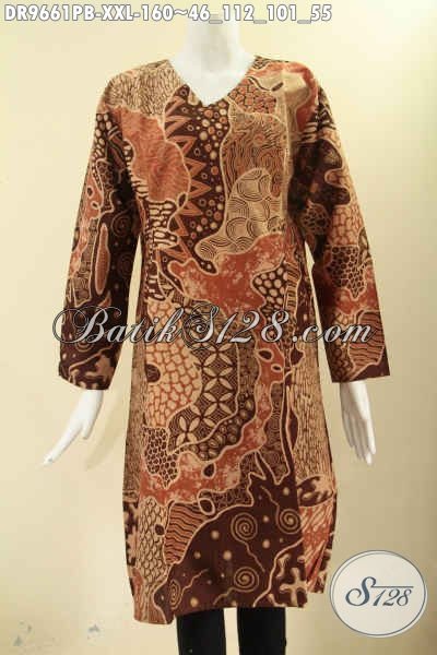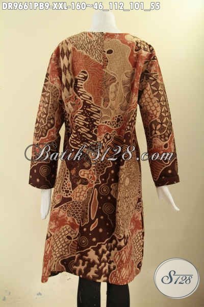 Produk Pakaian Batik Wanita Untuk Kerja Dan Acara Resmi, Busana Batik Modis Dan Kekinian Model Resleting Belakang Lengan Panjang Spesial Buat Yang Berbadan Gemuk [DR9661PB-XXL]