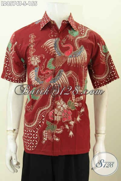 Produk Terbaru Baju Batik Casual Pria, Hem Batik Keren Kwalitas Bagus Warna Merah Motif Trend 2017, Penampilan Lebih Ganteng Maksimal, Proses Tulis [LD8574T-S]