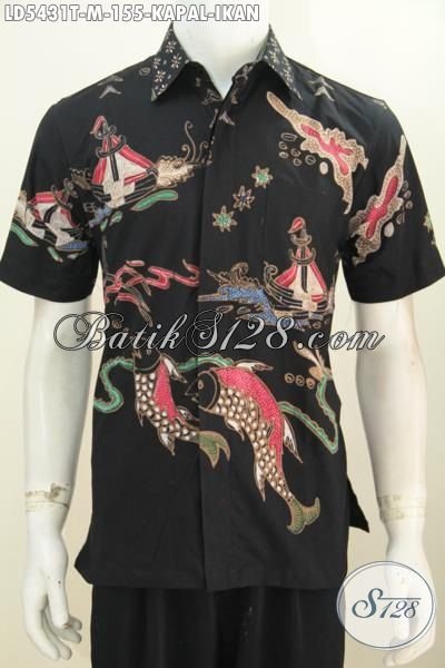 Produk Terbaru Baju Batik Tulis Lengan Pendek Hitam Motif Kapal Ikan, Pakaian Batik Gaul Pria Muda Untuk Penampilan Lebih Stylish [LD5431T-M]