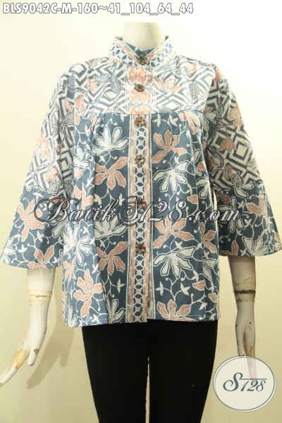 Produk Terbaru Blouse Batik Wanita Masa Kini Cocok Untuk Kerja Dan Hangout, Busana Batik Solo Asli Hadir Dengan Motif Bagus Nan Berkelas Lengan Panjang 7/8 Kerah Shanghai Hanya 100 Ribuan [BLS9042C-M]
