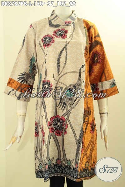 Produk Terbaru Busana Batik Solo Masa Kini, Dress Batik Kerah Shanghai Lengan 7/8 Bahan Adem Motif Kombinasi Di Lengkapi Resleting Belekang Hanya 150K [DR8787PB-L]