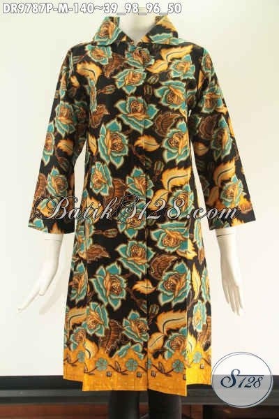 Produk Terbaru Busana Wanita Asli Buatan Solo, Tunik Batik Model Kerah Pakai Kancing Depan Sampai Bawah Lengan 7/8, Pas Banget Untuk Kerja Kantoran [DR9787P-M]
