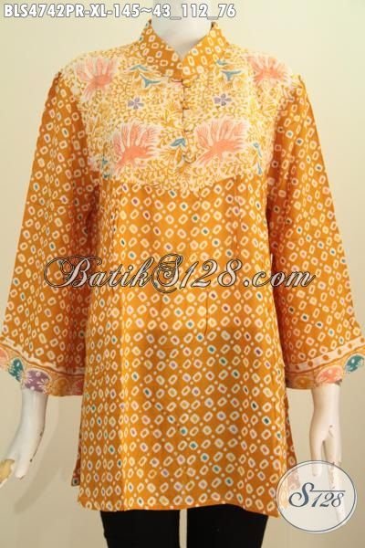 Produk Terbaru Dari Solo Busana Blus Modern Desain Keren Berbahan Kain Paris, Baju Batik Kuning Motif Trendy Proses Cap Cocok Buat Jalan-Jalan [BLS4742PR-XL]