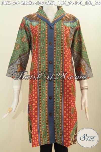 Produk Terbaru Dress Batik Halus Motif Sinaran Proses Printing, Pakaian Batik Modis Untuk Kerja Model Kerah Langsung Buat Perempuan Muda Dan Dewasa Tampil Istimewa [DR4856P-M , L , XXL]