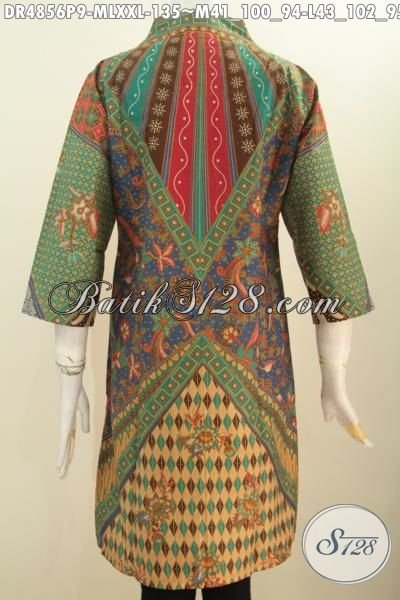 Produk Terbaru Dress Batik Halus Motif Sinaran Proses Printing, Pakaian Batik Modis Untuk Kerja Model Kerah Langsung Buat Perempuan Muda Dan Dewasa Tampil Istimewa [DR4856P-M , L]