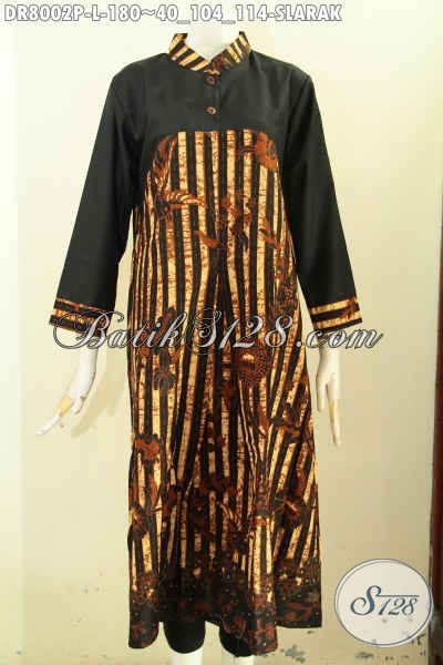 Produk Terbaru Dress Batik Panjang Motif Klasik Kombinasi Polos, Busan Batik Solo Proses Printing Untuk Kerja Dan Acara Resmi Harga 180K [DR8002P-L]