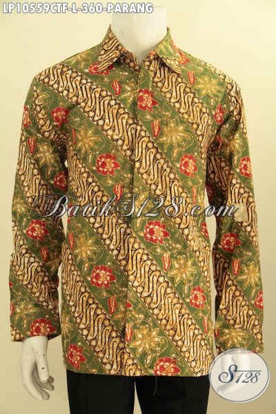 Produk Terbaru Kemeja Batik Klasik Motif Parang, Hem Batik Solo Elegan Lengan Panjang Full Furing Proses Cap Tulis, Bikin Pria Terlihat Mempesona [LP10559CTF-L]