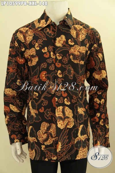 Produk Terbaru Kemeja Batik Pria Gemuk Motif Unik Dasar Hitam Elegan, Pakaian Batik Modis Dan Berkelas, Penampilan Lebih Tampan Dan Menawan [LP10599PB-XXL]