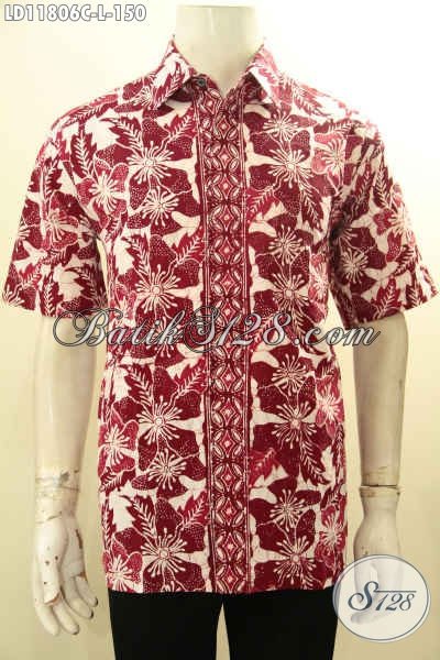 Produk Terbaru Kemeja Batik Solo Jawa Tengah Elegan Warna Merah Motif Trendy, Pakaian Batik Mdois Yang Membuat Pria Terlihat Tampan Menawan [LD11806C-L]