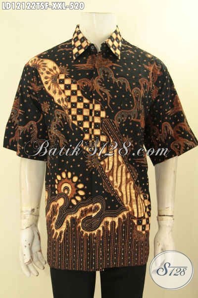 Produk Terbaru Pakaian Batik Mewah Lengan Pendek Halus Jenis Tulis Soga, Busana Batik Solo Premium Furing Desain Terkini, Spesial Untuk Lelaki Gemuk [LD12122TSF-XXL]