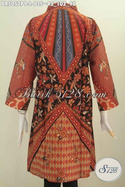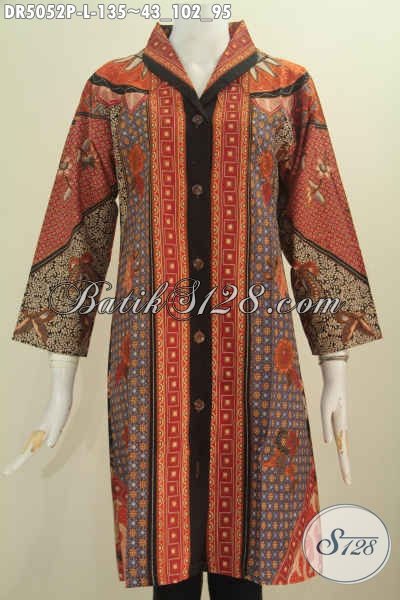 Produk Terbaru Pakaian Batik Wanita 2016, Baju Dress Batik Elegan Kwalitas Bagus Harga Terjangkau Model Kerah Langsung Untuk Tampil Modis Nan Istimewa [DR5052P-L]