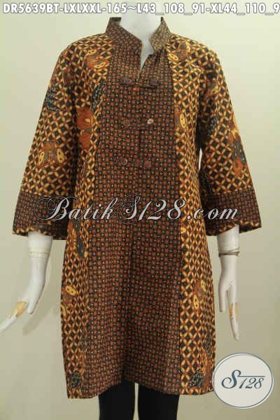 Produk Terbaruj Bsuana Batik Solo Model Kerah Shanghai Kancing Zig-Zag Motif Klasik Kombinasi Tulis, Buat Wanita Dewsa Karir Aktif [DR5639BT-L , XL , XXL]