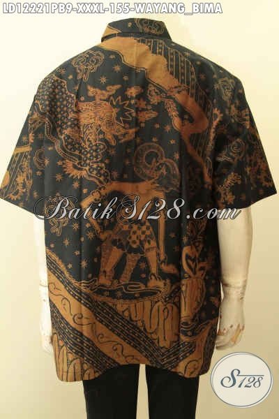 Produk Terkini Baju Batik Big Size Motif Wayang Bima, Kemeja Batik Lengan Pendek Warna Elegan Klasik Jenis Printing Cabut, Penampiloan Terlihat Gagah Menawan [LD12221PB-XXXL]