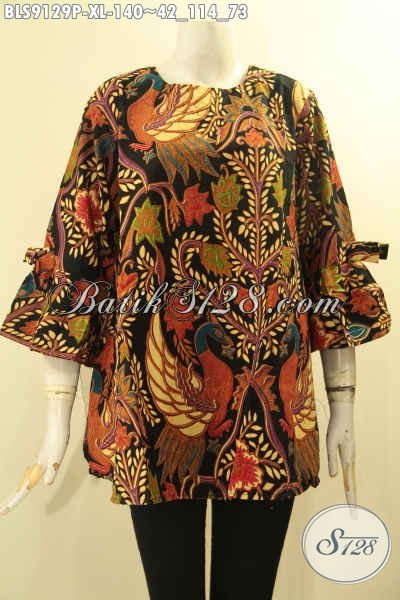 Produk Terkini Busana Batik Wanita Kwalitas Istimewa Harga Terjangkau, Pakaian Batik Halus Tanpa Kerah Lengan 3/4 Berpita Motif Elegan Khas Jawa Tengah [BLS9129P-XL]