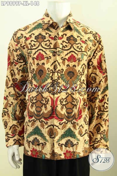 Produk Terkini Hem Batik Solo Kwalitas Istimewa, Baju Batik Kerja Model Lengan Panjang Mewah Proses Printing, Tampil Keren Berwibawa [LP9899P-XL]