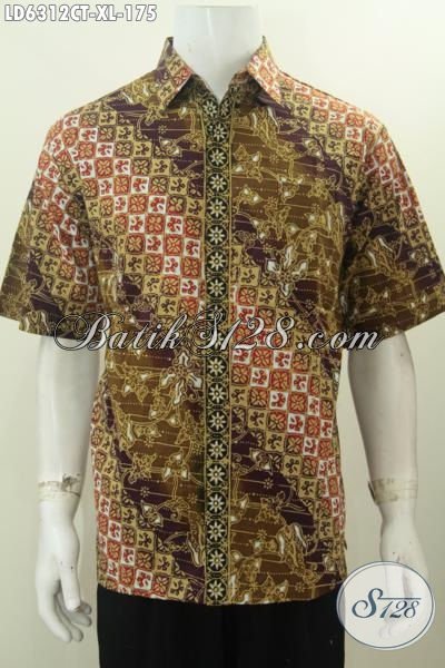 Produk Terkini Pakaian Batik Pria Model Lengan Pendek, Batik Hem Halus Kwalitas Istimewa Motif Parang Bunga Proses Cap Tulis, Modis Untuk Kondangan Dan Kerja Kantoran [LD6312CT-XL]