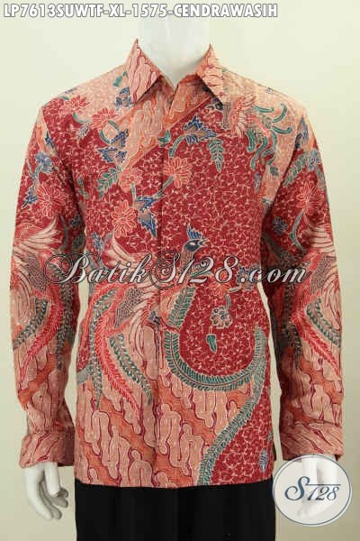 Produk Terkini Pakaian Batik Sutra Warna Merah Motif Cendrawasih Lengan Panjang Full Furing Proses Tulis Harga 1 Jutaan [LP7613SUWTF-XL]
