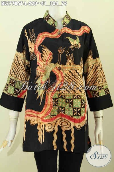 Pusat Baju Batik Kerja Kantoran, Sedia Blus Kerah Shanghai Wanita Karir, Pakaian Batik Bekelas Proses Tulis Motif Unik 200 Ribuan [BLS7785T-L]