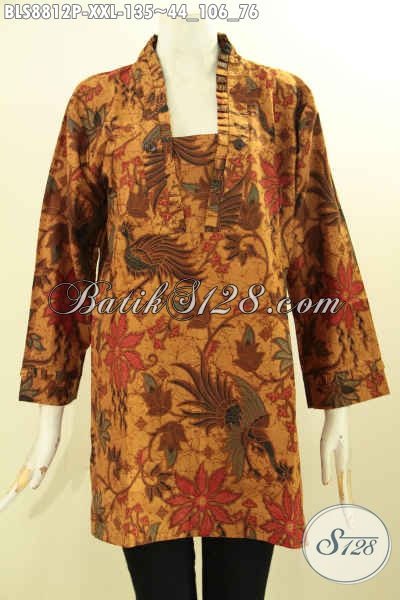 Pusat Baju Batik Masa Kini Pilihan Komplit, Sedia Pakaian Batik Modern Desain Etnik Kutubaru Lengan 7/8 Kwalitas Bagus Harga Murmer, Cocok Untuk Acara Resmi [BLS8812P-XXL]