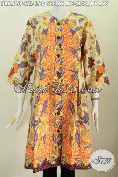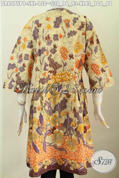 Pusat Baju Batik Online, Jual Aneka Dress Tanpa Krah Berbahan Halus Proses Printing Untuk Kerja Dan Santai [DR6275P-S , XL]