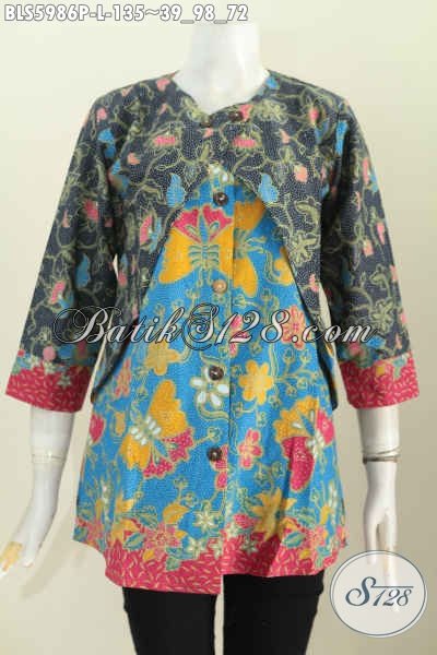 Pusat Baju Batik Online, Jual Blus Batik Kombinasi Rompi Model Lengan Panjang Motif Mewah Proses Printing Hanya 135K [BLS5986P-L]