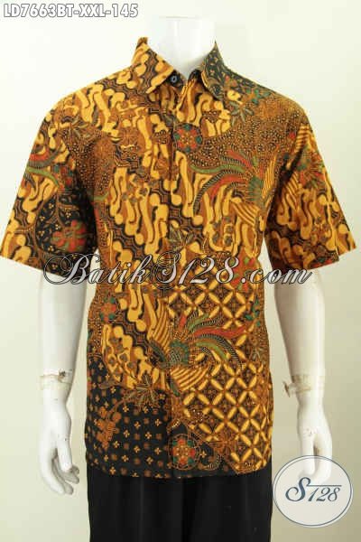 Pusat Baju Batik Solo Online, Jual Kemeja Lengan Pendek Ukuran Jumbo Motif Klasik Untuk Pria Gemuk [LD7663BT-XXL]