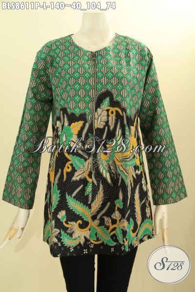 Pusat Baju Batik Solo Online Sedia Kemeja Blouse Batik Lengan Panjang Dengan Kantong Paspol Kanan Kiri Di Pinggang, Busana Batik Berkelas Resleting Depan Tanpa Krah Bahan Adem Nyaman Buat Ngantor [BLS8611P-L]