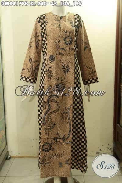 Pusat Baju Batik Solo Online Terlengkap, Sedia Gamis Batik Mode Variasi Dua Warna Motif Klasik Resleting Depan Proses Printing Cabut Hanya 240K, Cocok Untuk Acara Resmi [GM8417PB-XL]