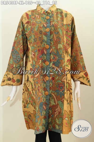 Pusat Baju Batik Wanita Online, Jual Dress Kancing Besar Motif Mewah Proses Printing, Berbahan Halus Warna ELegan Untuk Tampil Lebih Menawan [DR5438P-XL]