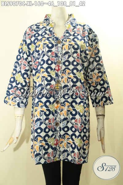 Pusat Baju Batik Wanita Terlengkap, Jual Online Blouse Modis Lengan 3/4 Kancing Depan Motif Bagus Tren Masa Kini Proses Cap, Cocok Untuk Acara Santai Maupun Resmi [BLS9070C-XL]