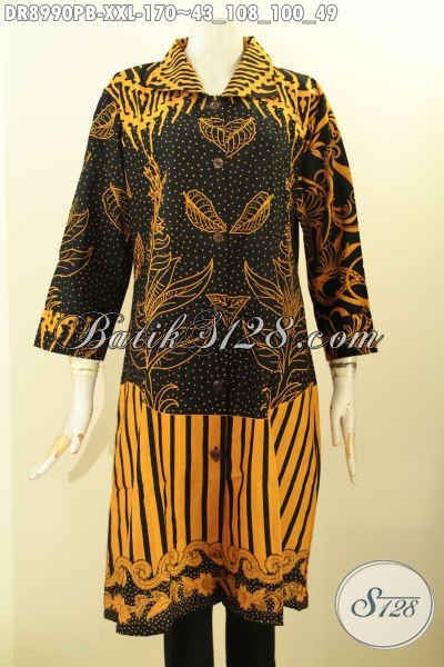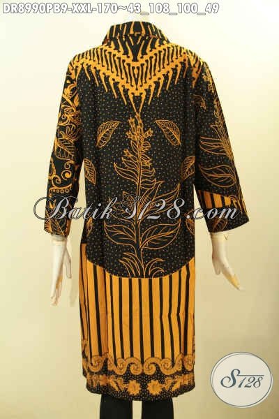 Pusat Baju Batik Wanita Tren Masa Kini, Busana Batik Big Size Lengan 7/8 Desain Kerah Dan Kancing Depan Berpadu Motif Terbaru Proses Printing Cabut, Bisa Untuk Kerja Dan Acara Resmi [DR8990PB-XXL]