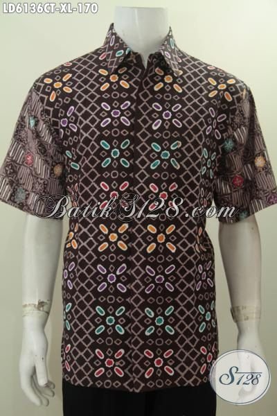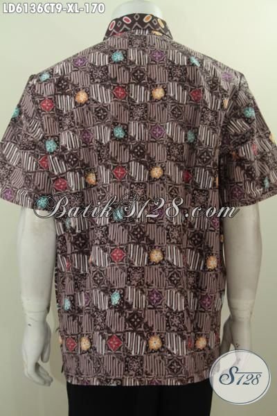 Pusat Batik Jawa Online, Sedia Produk Busana Batik Pria Model Lengan Pendek Dengan Motif Keren Bahan Adem Proses Cap Tulis Ukuran XL Harga 170 Ribu [LD6136CT-XL]