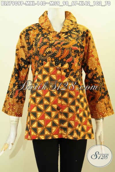 Pusat Belanja Batik Online, Jual Pakaian Kerja Wanita Karir Model Ofneisel Bagian Krah Dan Lengan Motif Klasik Printing Hanya 100 Ribuan [BLS7909P-M , XL]